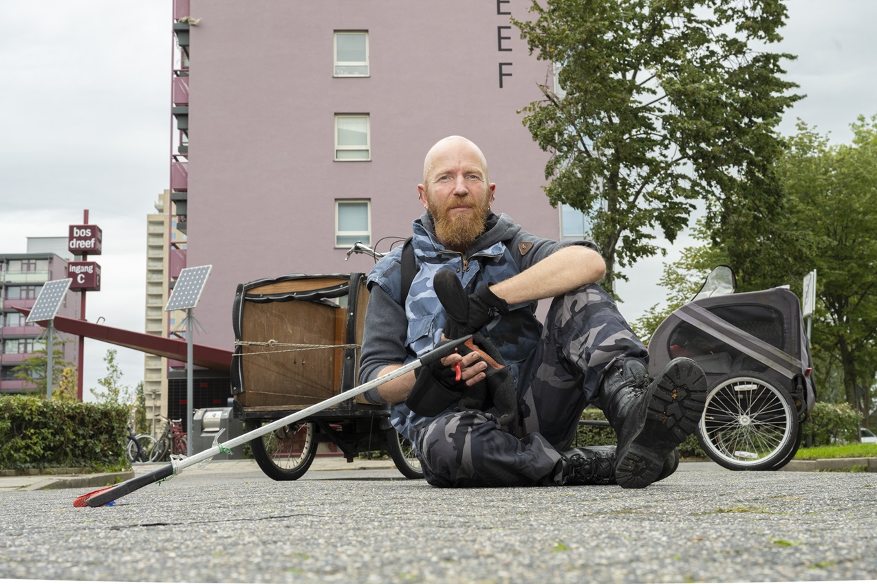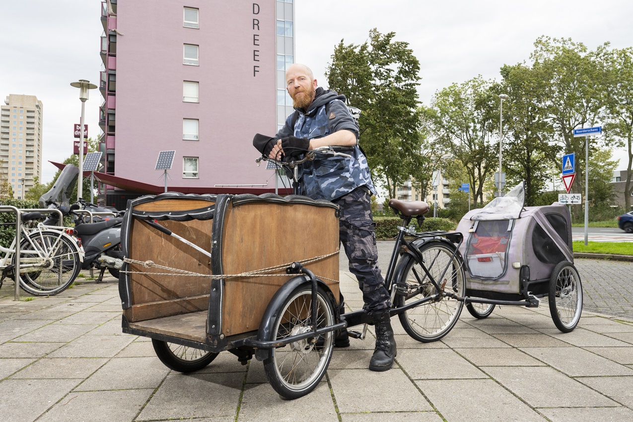 “Van alles: plastic flessen, vuilniszakken en zelfs meubels. Alles wat ik tegenkom en kan tillen, gaat op mijn bakfiets. En soms vind ik nog mooie spullen. Die geef ik een nieuw thuis.”
