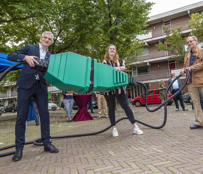 De eerste zonnestroominstallatie voor bewoners van sociale huurwoningen is op 16 september geopend in Leiderdorp. Via de energiecoöperatie ‘Delen Duurzame Energie’ kunnen huurders zonder inleg vooraf profiteren van zonnestroom. Deze nieuwe constructie maakt zonne-energie bereikbaar voor mensen met een kleine beurs. Berend Potjer, gedeputeerde energie van de provincie Zuid-Holland opende de eerste installatie samen met de huurders van woningcorporatie Rijnhart wonen.