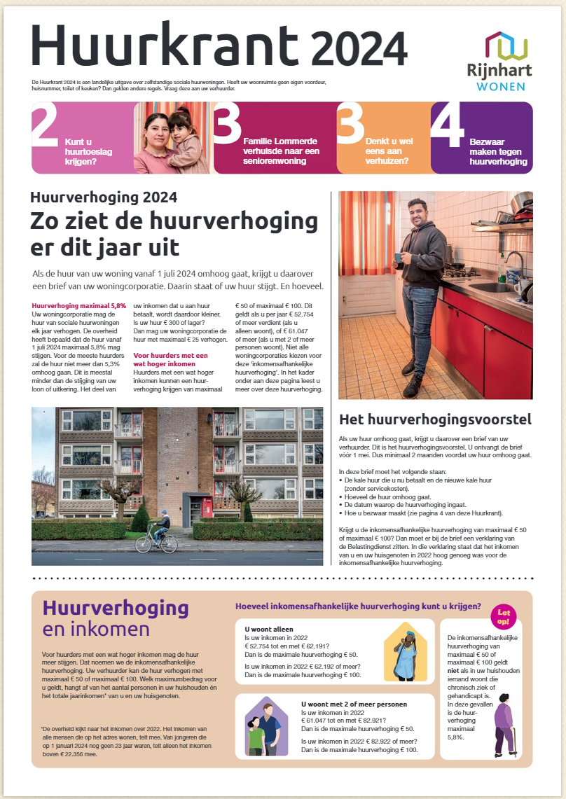 De nieuwe huurkrant is weer beschikbaar. Daarin leest u alles wat u moet weten over het huurbeleid van de overheid, bezwaarmogelijkheden, huurtoeslag en passend toewijzen.
