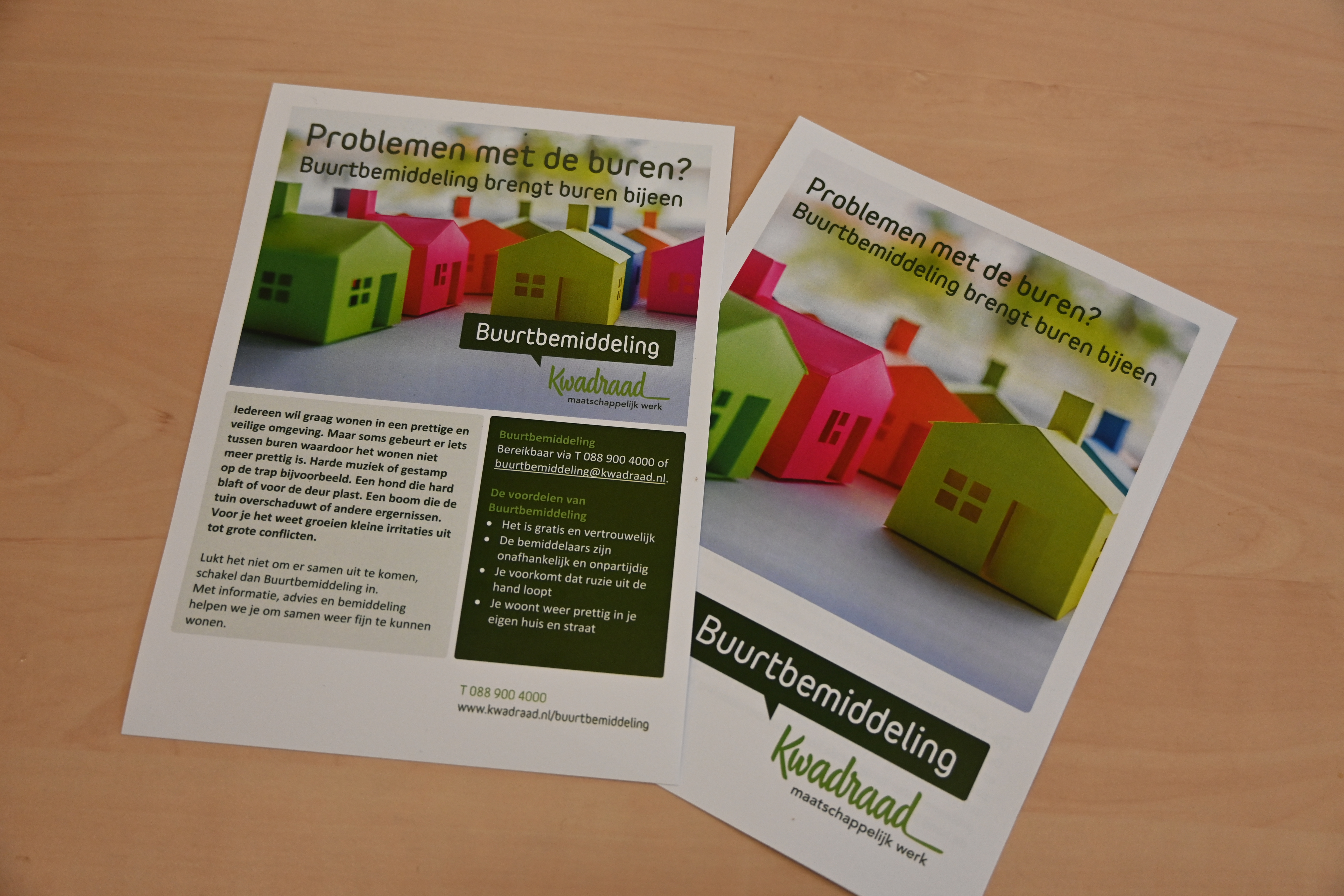 Buurtbemiddeling helpt om conflicten tussen buren te voorkomen. De vrijwilligers van Kwadraad, een organisatie voor maatschappelijk werk, adviseren inwoners over wat die zelf kunnen doen aan burenoverlast. Ook leggen ze uit hoe inwoners een onafhankelijke bemiddelaar kunnen inschakelen. Een onafhankelijke bemiddelaar gaat samen met beide buren in gesprek om tot goede en duidelijke afspraken te komen. In 2023 begeleidde Kwadraad al 34 trajecten.