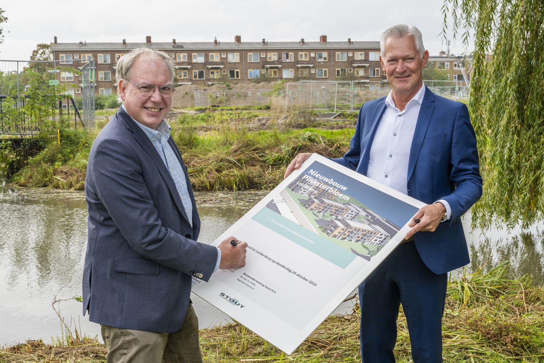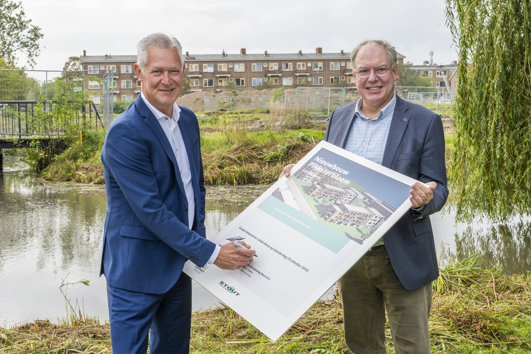 Vandaag is een nieuwe stap bereikt voor de nieuwbouw aan de Pinksterbloem in Leiderdorp. Rijnhart Wonen en Bouwonderneming Stout hebben de aannemingsovereenkomst voor het project getekend. De bouw start eind 2023 en de woningen worden naar verwachting voor de zomer van 2025 opgeleverd.